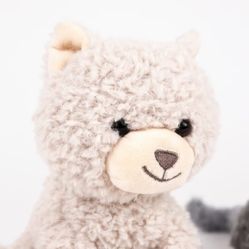 Två stora, ultramjuka plyschkattungar i mjuka toner, perfekta för extra kramar och komfort. Tillverkade av ekologisk bomull med giftfria majsfibrer som stoppning, är dessa storhjärtade katter både hållbara och allergivänliga. Ett idealiskt par för barn från nyfödda och uppåt, som också finns i en mindre version. Miljövänlig och skapad för kärleksfulla stunder.