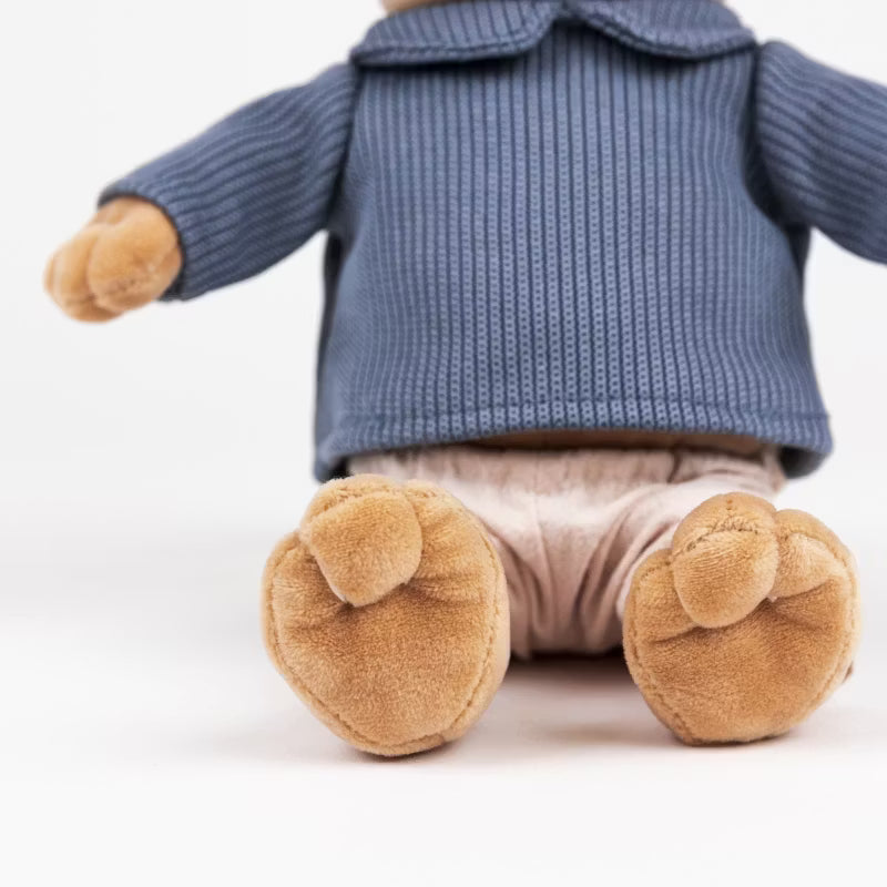 Alexis Björn, en del av Kompisgänget, är en charmig plyschbjörn klädd i en stickad blå tröja och mjuka rosa shorts. Med gosiga tassar och mjuka ansiktsdrag är denna leksak perfekt för lek, läggdags eller som dekoration i barnrummet. Tillverkad av ekologisk bomull med giftfria majsfibrer som stoppning, erbjuder Alexis hög kvalitet och allergivänlig komfort.