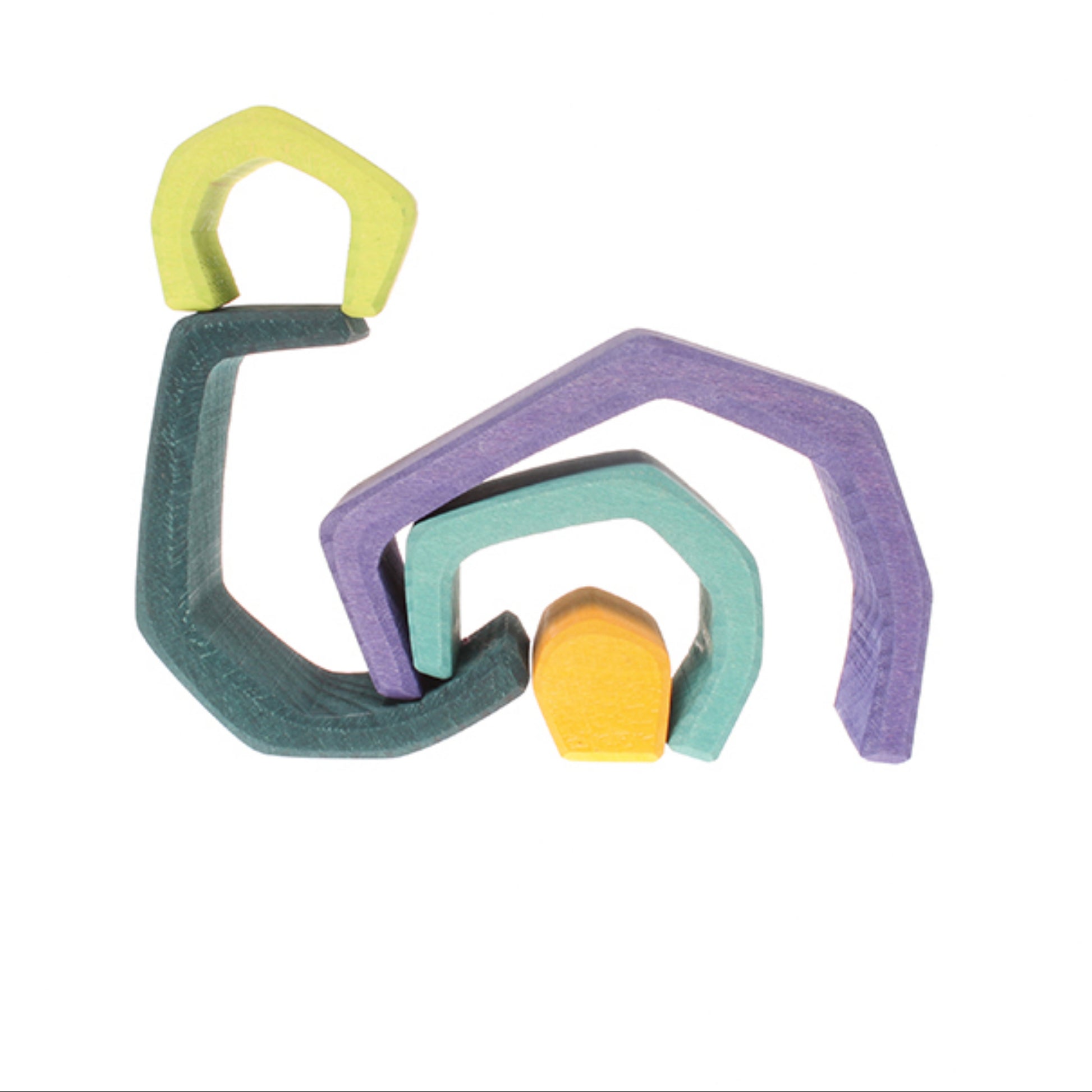 Fem delar i FSC-certifierat trä, där den största är 6 cm hög och 10 cm bred, perfekta för att stapla, rulla kulor eller bilar igenom, eller använda som bro, tunnel, staket, vagga eller hinder. Betsade med giftfria, vattenbaserade färger, erbjuder detta set oändliga möjligheter för kreativ lek. Passar barn från 3 år och uppåt för engagerande och miljövänliga lekstunder.