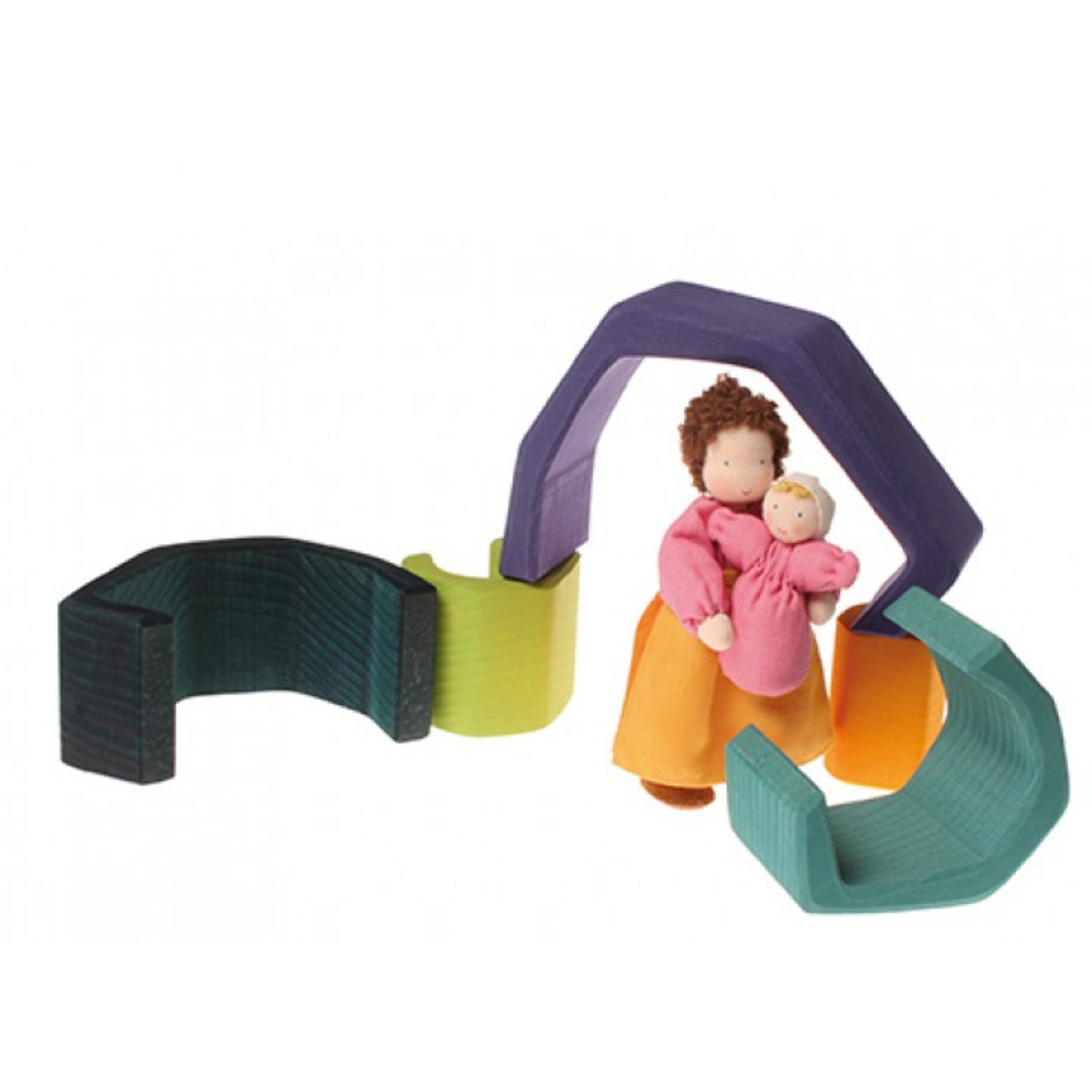 Sex delar i FSC-certifierat trä, där den största är 16 cm lång och 10 cm bred, perfekta för att stapla, rulla kulor eller bilar igenom, eller använda som bro, tunnel, staket, vagga eller hinder. Betsade med giftfria, vattenbaserade färger, erbjuder detta set oändliga möjligheter för kreativ lek. Passar barn från 1 år och uppåt för engagerande och miljövänliga lekstunder.